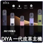 DIYA 叮啞皮革主機,380mAh 電池,8W/10W 雙段調節,LED 液晶顯示屏,Type-C 快充,兼容一代煙彈。