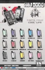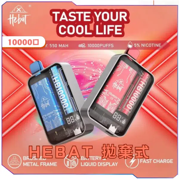 HEBAT喜貝10000口一次性電子菸,20mL煙油,5%尼古丁,650mAh可充電電池,支援Type-C快充,提供16種水果、薄荷與菸草口味。無需維護,拆封即用,約10000口超長續航,立即享受極致體驗!