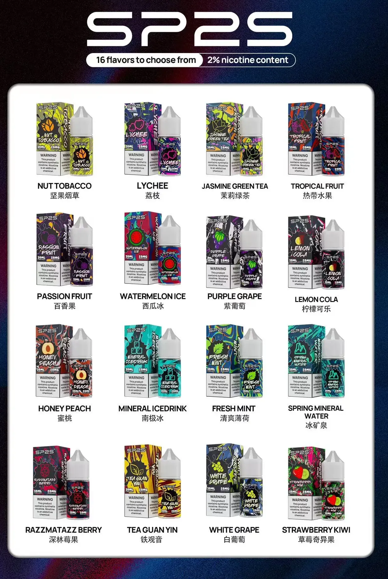 SP2S 思博瑞煙油,專為可注油煙彈而設計,30ML 大容量,20MG 尼古丁濃度,提供16種豐富口味選擇,滿足您對小煙煙油的多樣需求。